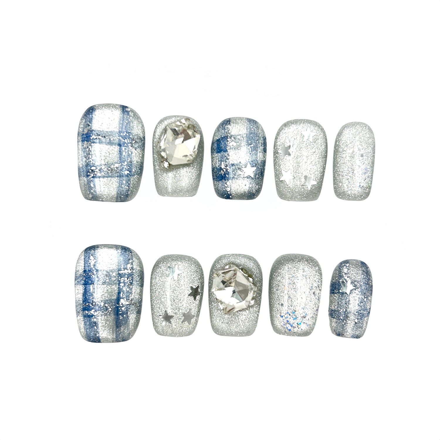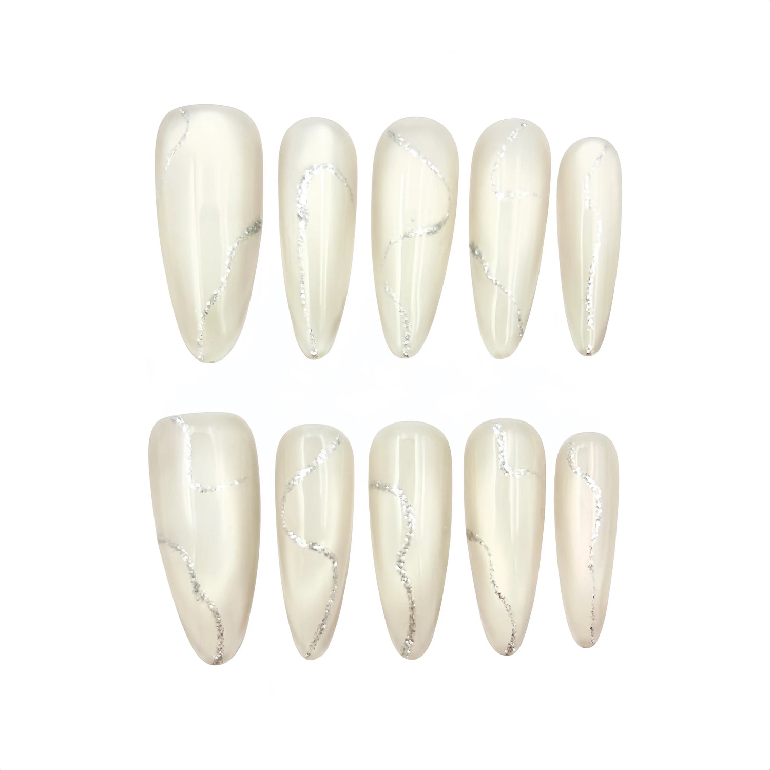 White Silver Crack Press-On Nails - Minimalist False Nails UK